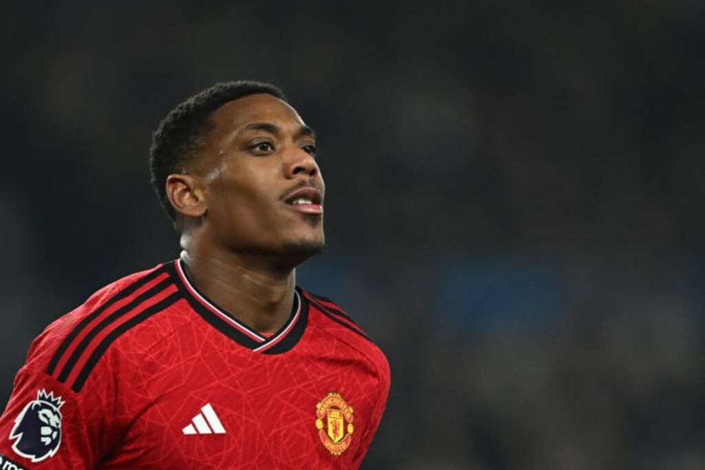 | L'attaquant de Manchester United, Anthony Martial, buteur sur le terrain d'Everton, le 26 novembre à Liverpool. |