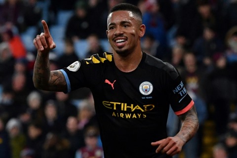 | L'attaquant brésilien de Manchester City Gabriel Jesus buteur sur le terrain d'Aston Villa le 12 janvier à Birmingham. |