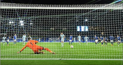 Le milieu de terrain italien Jorginho, spécialiste de l'exercice, a pris à contre-pied le gardien adverse (0-1, 23e).