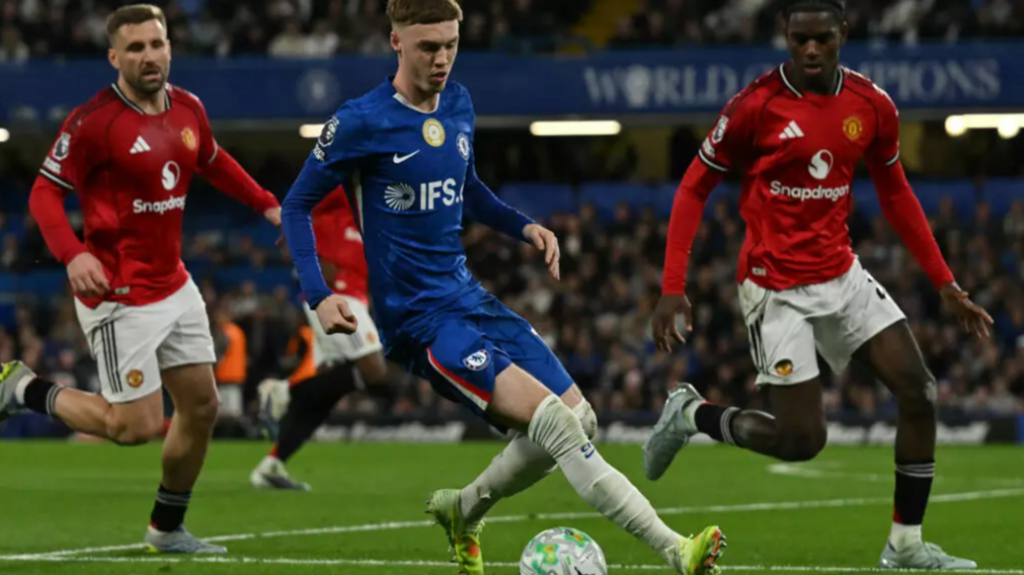 | Le joueur de Chelsea Cole Palmer lors de la défaite en championnat contre Manchester United, le 18 avril à Londres. |