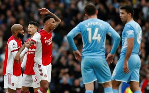 Ils avaient auparavant égalisé par Riyad Mahrez (57e) sur un penalty attribué après intervention de la VAR et fortement contesté par le public de l'Emirates Stadium jusqu'à la fin du match, et ont dû attendre les toutes dernières secondes pour voir Rodri marquer contre toute attente (90+3, 1-2). Entretemps, Arsenal avait souvent donné l'impression de pouvoir l'emporter malgré son infériorité numérique.