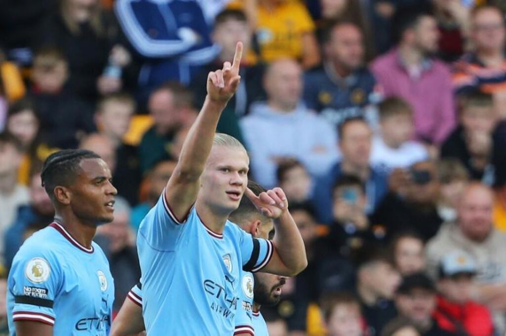 | L'attaquant vedette de Manchester City Erling Haaland après avoir marqué à Wolverhampton, le 17 septembre. |