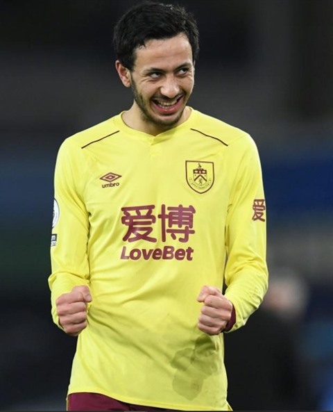 | Le milieu de Burnley Dwight McNeil buteur sur le terrain d'Everton, le 13 mars 2021 à Liverpool. |