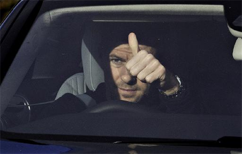 | Le capitaine de Liverpool, Steven Gerrard, adresse un signe aux supporteurs des Reds, en quittant le centre d'entraînement du club, le 2 janvier. |