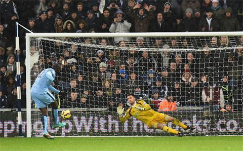 | Le milieu de terrain de Manchester City Yaya Touré inscrit un penalty sur le terrain de West Bromwich, le 26 décembre. |