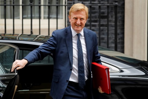 | Le secrétaire d'États aux Sports, Oliver Dowden, à son arrivée au 10 Downing Street, le 13 mai pour la réunion du gouvernement britannique. |