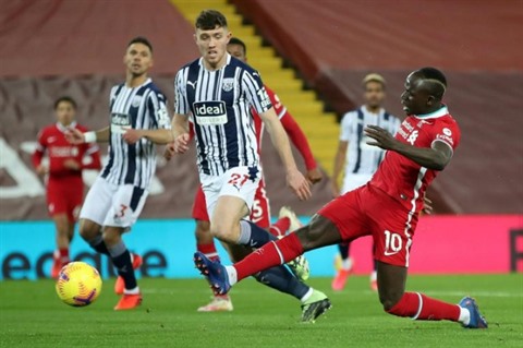 | L'attaquant de Liverpool Sadio Mané (drotie) ouvre la marque contre West Bromwich Albion, le 27 décembre à Liverpool. |
