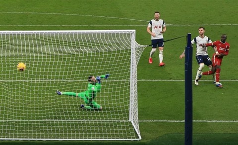 | L'attaquant sénégalais Sadio Mané (droite) marque le 3e but pour Liverpool lors du match de Premier League contre Tottenham, à Londres, le 28 janvier. |