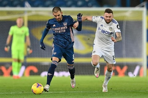 | Le milieu espagnol d'Arseanl, Dani Ceballos (gauche), aux prises avec son homologue nord-irlandais de Leeds, Stuart Dallas, lors du match de Premier League à Leeds, le 22 novembre. |