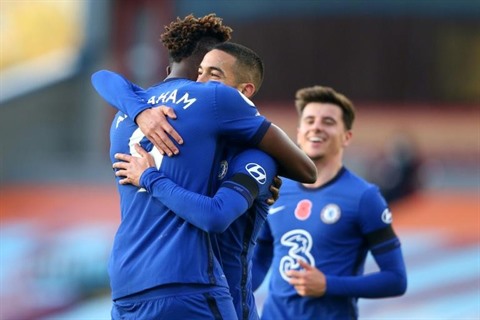 | Hakim Ziyech (droite), buteur pour Chelsea, remercie son passeur Tammy Abraham, le 31 octobre à Burnley. |