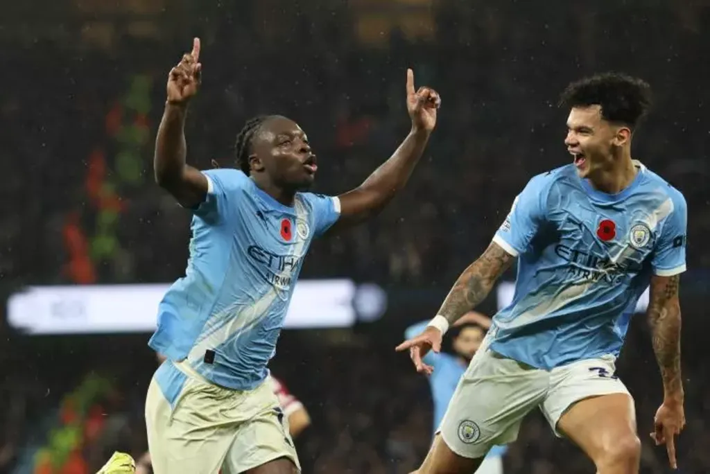 | Jérémy Doku (gauche), auteur du troisième but de Manchester City face à Liverpol, le 9 novembre à l'Etihad Stadium. |
