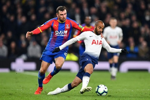| Lucas Moura (droite) dispute un ballon avec Palace James McArthur, le 3 avril à Londres. |