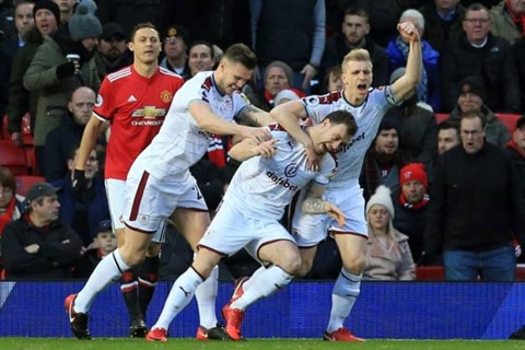 | La joie des joueurs de Burnley après un but contre Manchester United, le 26 décembre à Old Trafford. |