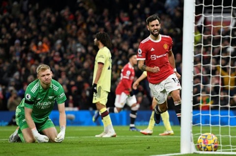 | Bruno Fernandes vient d'égaliser pour Manchester United face à Arsenal à Old, le 2 décembre. |