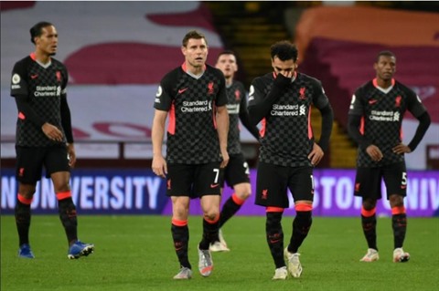| Les joueurs de Liverpool accablés après leur défaite face à Aston Villa, à Birmingham, le 4 octobre. |