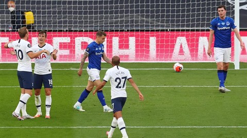 Un incident d'autant plus vite oublié que Tottenham l'a emporté, même si c'était de façon plutôt heureuse. À la 24e minute, après deux tirs contrés, le ballon est parvenu à Giovanni Lo Celso qui a tiré en pivot. La tentative ne semblait pas cadrée à la vue du ralenti, mais le stoppeur international d'Everton Michael Keane, qui passait par là, a malencontreusement dévié le ballon, qui a pris à contre pied son gardien Jordan Pickford (1-0, 24e). La victoire est tout de même allée à l'équipe qui la voulait le plus, Tottenham n'étant pas passé loin de doubler la mise par Son en seconde période, sans deux parades de Pickford (54, 65).