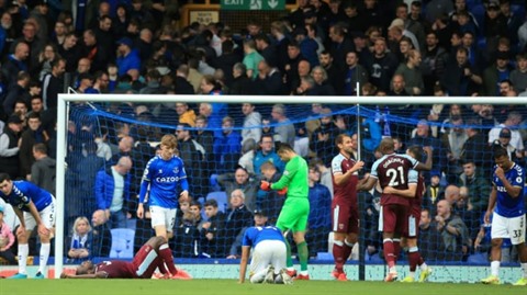 | La déception des joueurs d'Everton piégés à domicile par West Ham United, le 17 octobre à Liverpool. |