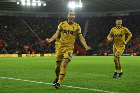 | L'attaquant Harry Kane vient de marquer le 2e but de Tottenham sur le terrain de Southampton, le 28 décembre |