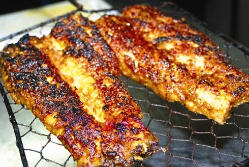 - Nettoyez l’anguille, puis lever les deux filets. Les mettre à mariner 30 minutes avec du sel, de la ciboulette, du nuoc mam, du poivre, du piment rouge, de l’aneth, de la coriandre, un peu d’alcool de riz. Mettre à griller au barbecue sur des braises ardentes pendant 20 minutes. Les filets sont cuits lorsqu’ils ont pris une belle couleur dorée.