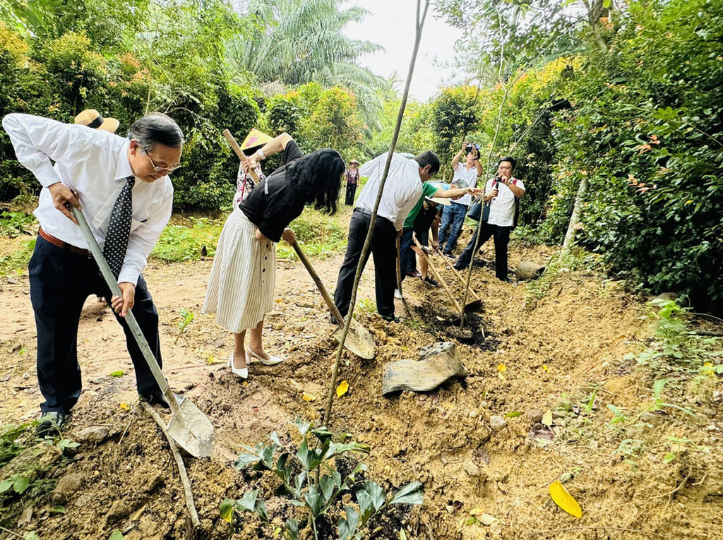 | Les activités de plantation d’arbres pour protéger l’environnement dans la zone écotouristique de Suôi Rao Ecolodge. |