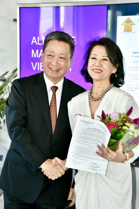 | Anoa Dussol Perran et Hô Anh Tuân, président de la VNABC, lors de la cérémonie de réception du titre d’ambassadrice, le 11 septembre à Paris. |