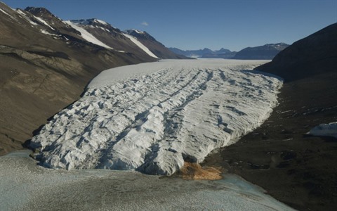 | Vue aérienne du glacier antarctique Taylor près de la station scientifique américaine de Mc Murdo, le 11 novembre 2016. |