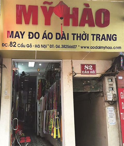 | La boutique d’áo dài My Hào dans la rue Câu Gô à Hanoï. |