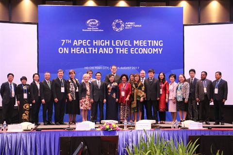 | Photo de famille de la 7e réunion sur la santé et l’économie dans le cadre de la 3e conférence des hauts officiels de l’APEC (SOM 3). |