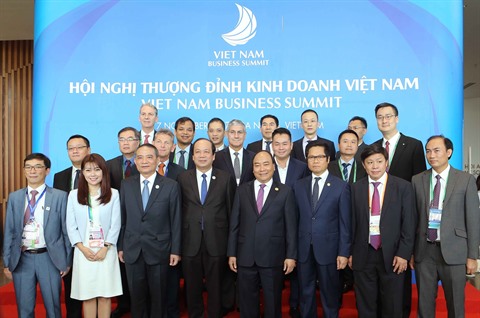 | Le Premier ministre Nguyên Xuân Phuc (4e à droite) et ses délégués prennent la pose au Sommet des affaires du Vietnam 2017, le 7 novembre à Dà Nang (Centre). |