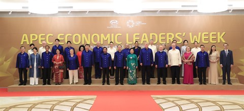 | Les dirigeants des économies membres de l’APEC prennent la pose lors du dîner de gala, le 10 novembre à Dà Nang. |