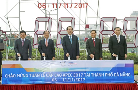 | Le président vietnamien Trân Dai Quang (centre) à la cérémonie de lancement du compte à rebours vers la Semaine de haut rang de l’APEC 2017, à Dà Nang, le 18 avril. |