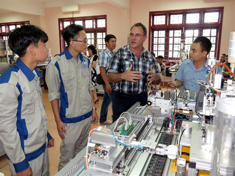 | Un spécialiste français présente de nouveaux équipements aux étudiants de l’Institut des technologies de Dung Quât, province du Quang Ngai (Centre). |