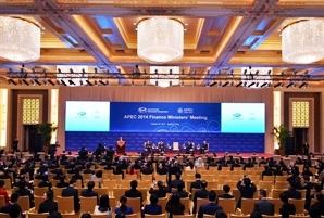 | Une réunion en marge du Forum de coopération économique Asie-Pacifique (APEC) à Pékin. |