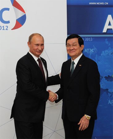 | Le président du Vietnam, Truong Tân Sang (droite), et le président russe Vladimir Poutine. |