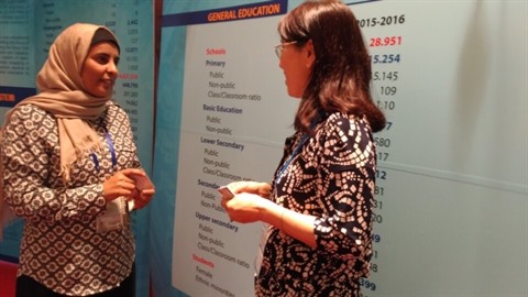 | La Docteur Asmaa Alfadala (gauche), directrice de recherche de WISE, en marge de PPSTI-10, le 11 mai à Hanoï. |