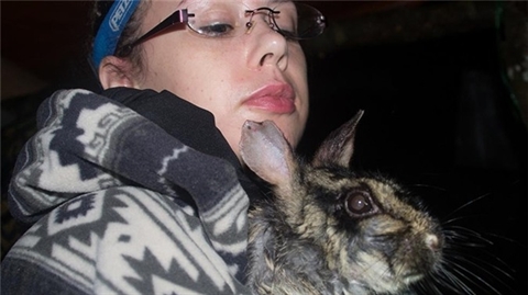 | Sarah Woodfin et ce lapin extrêmement rare. |
