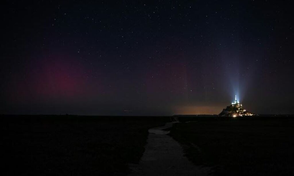 | Une aurore boréale survient au Mont Saint-Michel, le 27 février. |