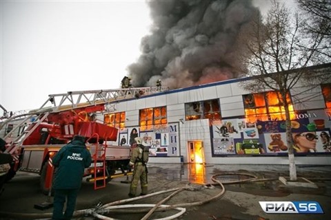 | Lieux de l'incendie au Centre de commerce ''Mir" de la ville d’Orenbourg. |