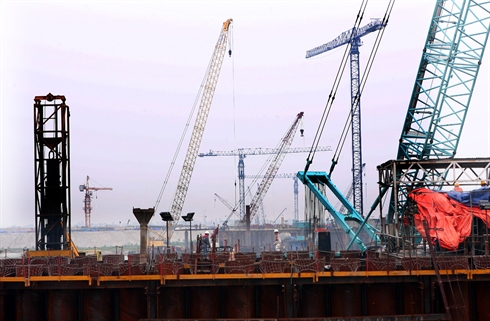 | Travaux du pont de Nhât Tân, à Hanoi. Photo : Huy Hùng |