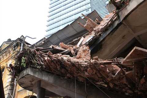 | Une ancienne villa française dans la rue Trân Hung Dao (Hanoi) s’est effondrée le 22 septembre faisant 2 morts, et 6 blessés. |