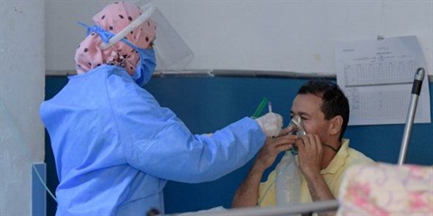 | Un infirmier tunisien prodigue les premiers soins à un patient du COVID-19 à l’hôpital Charles Nicole dans la capitale Tunis, le 16 juillet 2021. |
