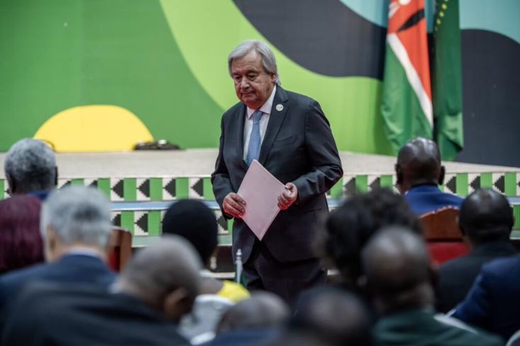 | Le secrétaire général des Nations unies Antonio Guterres lors du sommet africain sur le climat à Nairobi, le 5 septembre. |