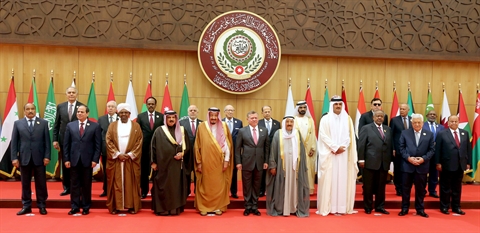 | Photo de famille du 28e Sommet annuel des dirigeants arabes, le 29 mars à Sweimeh. |