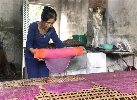 | Produire la galette de riz à base de pitayas à Vinh Long. |
