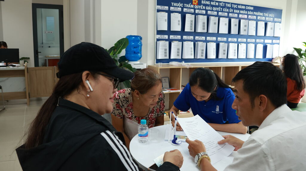 L’un des changements majeurs observés à Thu Duc est l’évolution du rôle des agents administratifs, passés d’un simple accompagnement à une aide active et complète. Auparavant, les citoyens devaient effectuer eux-mêmes toutes les démarches en ligne ; aujourd’hui, ils peuvent se rendre au centre administratif et être assistés de A à Z. Pour les personnes âgées ou peu familières des outils numériques, les fonctionnaires prennent en charge l’intégralité des étapes : numérisation des documents, remplissage des formulaires, soumission des dossiers en ligne. Ce modèle permet non seulement de réduire le temps de traitement, mais aussi d’améliorer nettement la satisfaction des usagers.