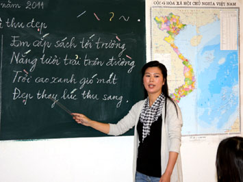 Actuellement, il y a autant d’élèves vietnamiens que lao. C’est pourquoi l’enseignent est dispensé en deux langues. Ils donnent la priorité aux leçons d’histoire et de géographie du Vietnam afin que les élèves vietnamiens puissent mieux comprendre leur pays d’origine. La classe maternelle de l’institutrice Trân Thi Viêng compte 28 enfants, issus des familles Viêt kiêu. Ils parlent couramment le vietnamien.