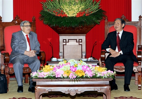 Il lui a présenté sommairement les résultats du XIIe Congrès national du PCV et les grandes orientations du Renouveau, ainsi que l'état du développement socioéconomique et de l’intégration au monde du Vietnam. Dinh Thê Huynh est convaincu que les relations d’amitié et de coopération entre le PCV et le PCF vont s'approfondir.