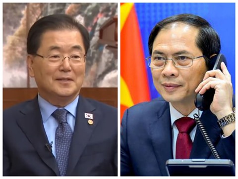 | Le ministre vietnamien des Affaires étrangères Bùi Thanh Son (droite) et son homologue sud-coréen Chung Eui-yong. |