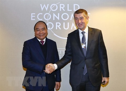 | La rencontre entre le Premier ministre Nguyên Xuân Phuc (gauche) et son homologue tchèque, Andrej Babis, en marge du Forum économique mondiale de Davos en janvier 2019. |