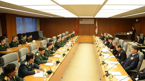 | Entretien entre le ministère vietnamien de la Défense (gauche) et celui japonais, le 10 avril à Tokyo. |
